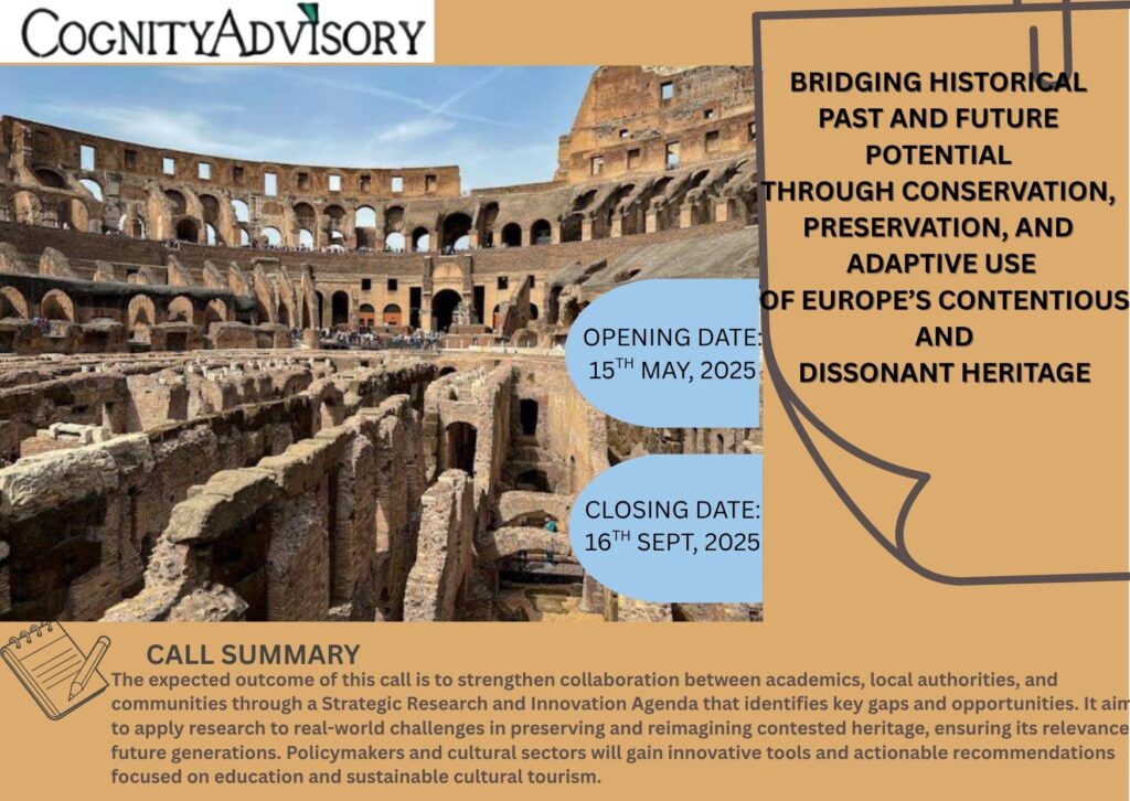 This collaborative network should develop a comprehensive Strategic Research and Innovation Agenda for the preservation, conservation, transmission, and adaptive reuse of contested and dissonant heritage across Europe. This agenda should identify trends, clear drivers, gaps and opportunities to highlight the added value of complementary research activities or initiatives in this field. The proposed consortium should have an active role in promoting critical dialogues on remaining controversies and their lasting impacts on contemporary societies. Proposals should provide an assessment offering policy recommendations for the documentation, revitalisation (such as better understanding preservation, restoration, transmission, and transformation) and adaptive reuse of dissonant and contested heritage assets to preserve historical and cultural values. The recommendations should support public administrations, particularly local authorities, and the Cultural and Creative Industries in managing contested heritage and engaging with local community.