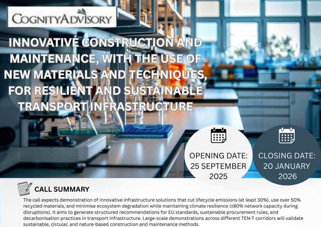 HORIZON-CL5-2026-01-D6-10 General information Programme Horizon Europe (HORIZON) Call Cluster 5 Call 01-2026 (WP 2025) (HORIZON-CL5-2026-01) Type of action HORIZON-IA HORIZON Innovation Actions Type of MGA HORIZON Action Grant Budget-Based [HORIZON-AG] Open For Submission Deadline model single-stage Opening date 25 September 2025 Deadline date 20 January 2026 17:00:00 Brussels timeTopic description Expected Outcome: Project results are […]