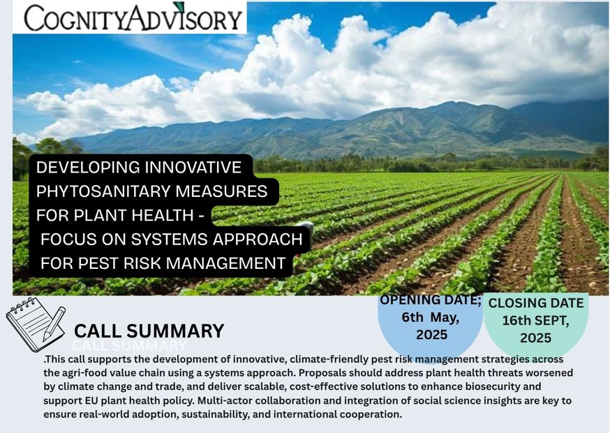 Effective plant health measures play a vital role in protecting sustainable agriculture and enhancing global food security, safeguarding the environment, forests, and biodiversity, and facilitating economic and trade development. A systems approach to plant health is a comprehensive pest risk management strategy that integrates different measures, at least two of which act independently, with cumulative effect and of high efficacy[[ International Standard for Phytosanitary Measures No. 14. The use of integrated measures in a systems approach for pest risk management [https://www.ippc.int/en/publications/607]]. The systems approach is designed to effectively meet phytosanitary import requirements, allowing for the consideration of measures and procedures that contribute to effective pest risk management throughout the entire value chain, from pre-planting and pre-harvest stages to harvest, post-harvest handling, transport, and distribution. By integrating multiple measures, this approach enhances the ability to manage pest risks comprehensively and sustainably, ensuring the health of plants and the safety of agricultural products across borders. Proposals should target one or more plant pests[2], providing a clear explanation and justification for the selected pest(s) in alignment with the proposal’s objectives and the topic’s expected outcomes.
